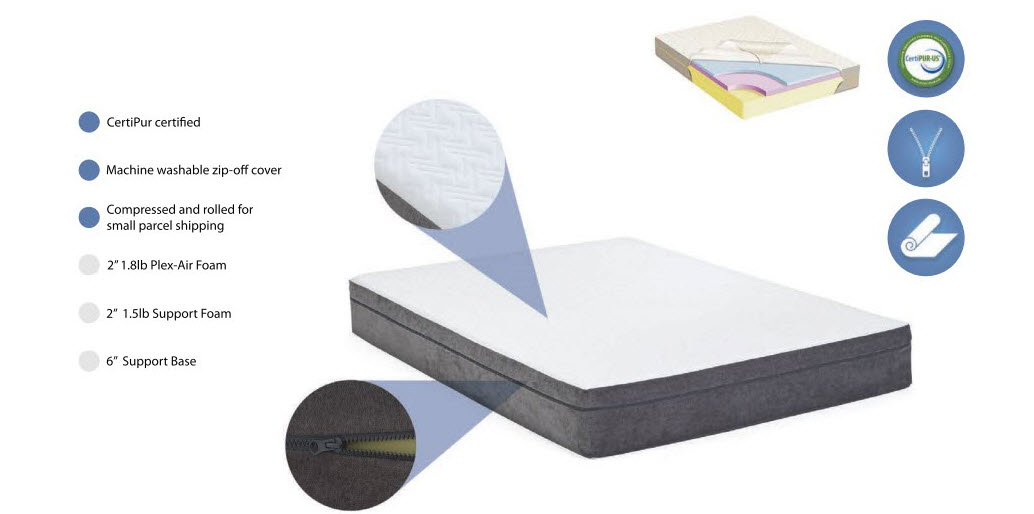Maximize your comfort with Incorporating the best materials for optimal sleep, the 10" Southbay Plush Memory Foam Mattress features multiple layers of foam that build the perfect combination of bliss. The 2" 1.8lb. Plex-Air top layer promotes air flow and increases comfort. The 2" 1.5lb. Support Foam provides buoyancy to alleviate and reduce stress on pressure points while working harmoniously with the 6" Support Base for a Plush feel, it's simply comfort at its best.