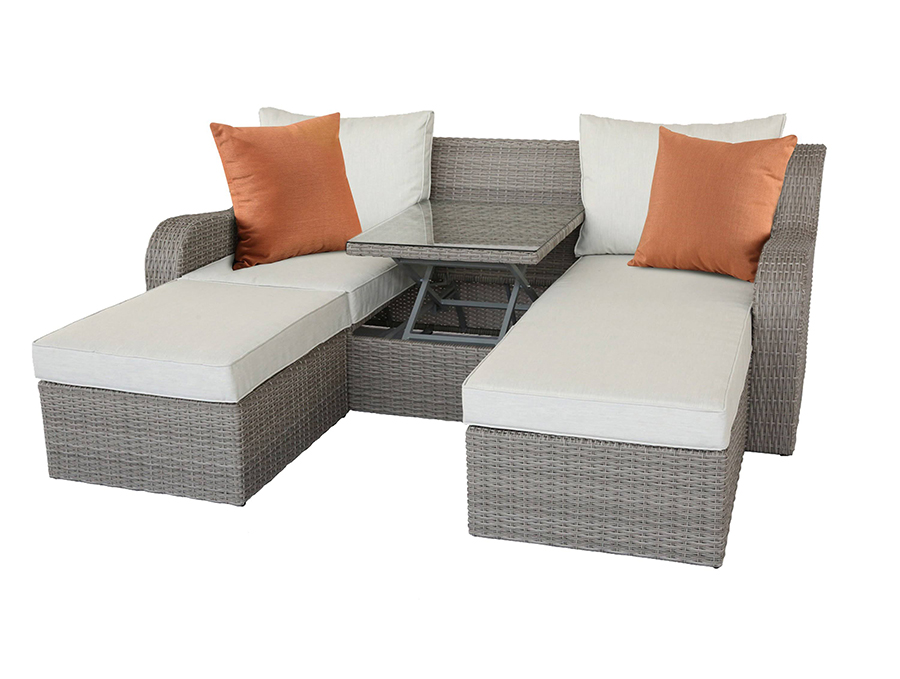 | Modern classic styling paired with glamorous elements creates a unique addition to outdoor area in the Salena Collection. Beige fabric features subtle texture with a gray wicker outer body cloth providing visual interest. It comes with lift table top to adjust with your own preference that furthers the transitional styling to complete the look.