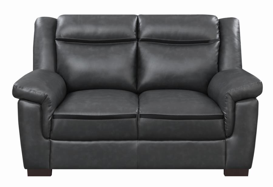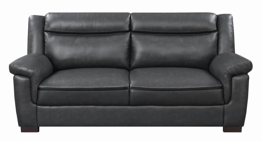 | Elevate your living room with this sleek, modern sofa. Upholstered in soft, leathery material, it has a truly sophisticated look. Its comfortable, padded seating promotes soothing relaxation. Subtle stitching traces its frame for an updated touch of style. This sofa is offered in a variety of colors, giving you multiple options to match your decor. *Please note that the base price only includes (1) sofa. Please add the additional items to customize this set to your liking.