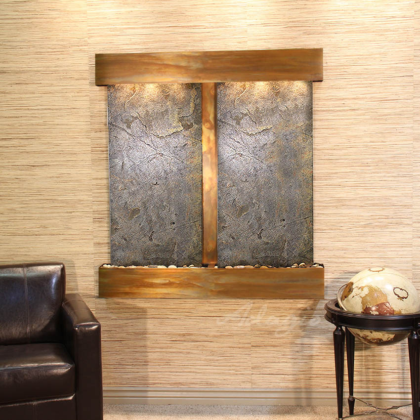 | This indoor waterfall comes with many stone and trim options. Enjoy this water fountain with the sound of running water in your home or office.