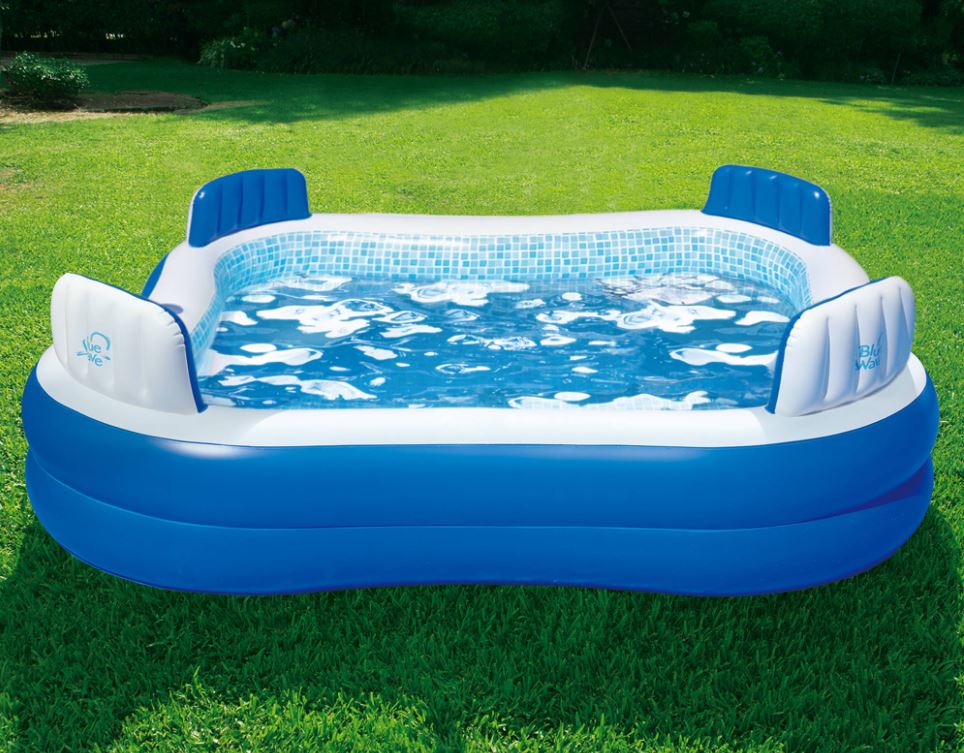 | Create a space for the entire family to enjoy together this summer with the Premier Inflatable Pool. Adults can sit back and relax on built-in cushioned seats with backrests while they watch the kids swim and play. Two integrated cup holders keep drinks cool and upright. Ten air chambers and a two-tier design make inflating quick and easy - simply inflate the top ring and the pool will rise as it fills with air. Crafted from triple-layer, heavy-gauge PVC, the Premier Swimming Pool is certain to deliver many summers of fun and enjoyment for the whole family. *In home assembly unavailable for swimming pools.