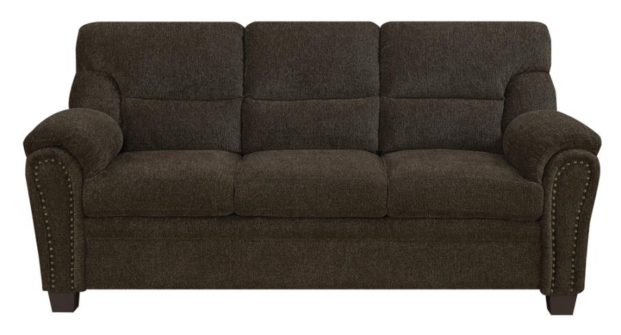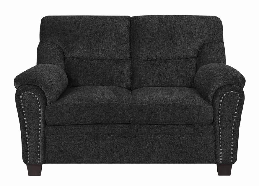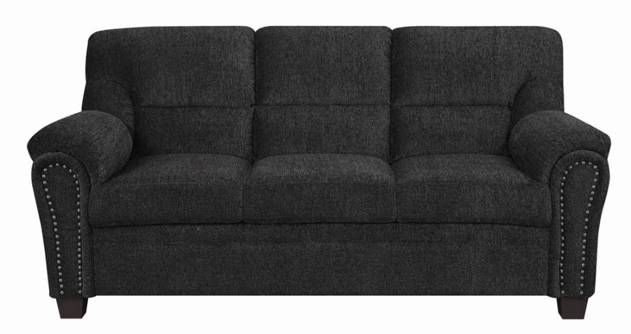 Add an aesthetic of cool, classic glamour to your living room. This sofa boasts a transitional design that looks lovely in any space. Its silhouette is sleek and simple with gracefully curved arms. Its beautiful upholstery is brought to life by elegant nailhead trim. Its seating is pleasingly soft and plush, rounding out its casual design with a high level of comfort. *Please note that the base price only includes (1) sofa. Please add the additional items to customize this set to your liking.
