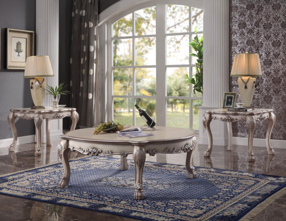| Introduce our new design for the Dresden sofa. Features vintage bone white color with matching occasional table, this sofa collection creates an elegant and traditional design into your living room. Hand-Crafted pieces inspired from the luxurious design of the past, the new Dresden sofa features elaborate wood carving details and a sophisticated style that give your living space a comfort and royal atmosphere. *Please note that the base price only includes (1) Sofa. Please add the additional items to customize this set to your liking.