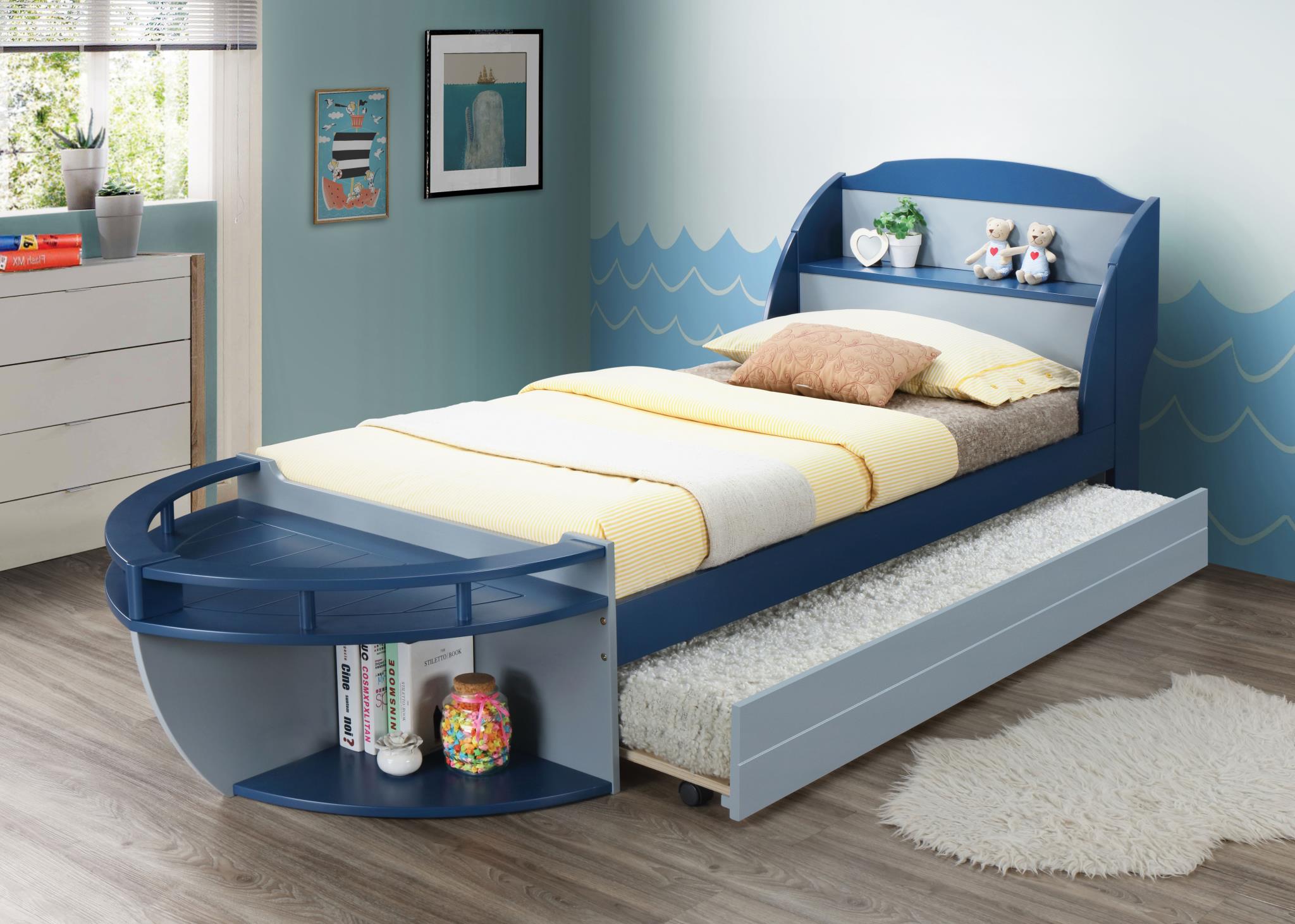 | With gray and navy finish, the Neptune II collection boasts of a nautical theme. The boat shape design throughout the collection brings you a relaxing and cozy environment in your bedroom which is perfect for someone who likes sailing and the ocean. It also features plenty of space for you to store clothing or any other stuffs in the room. This is an ideal one for you to choose. Please note that the base price includes (1) Bed. Please add the Trundle or storage drawers to customize this set to your liking.