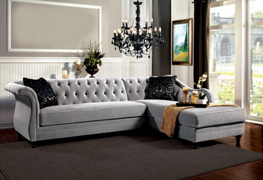 | Like a fabulous French style icon, this beautiful sectional sofa is a sensual mix of casual and elegance. It's extraordinary comfort comes from the plush bench seat; sink-in tufted back cushions, and stylish sheltered wing arms which make great headrests when reclining. The luxurious proportions of this sectional is the chaise that is well padded and sized. Making this piece easy to get comfortable in.