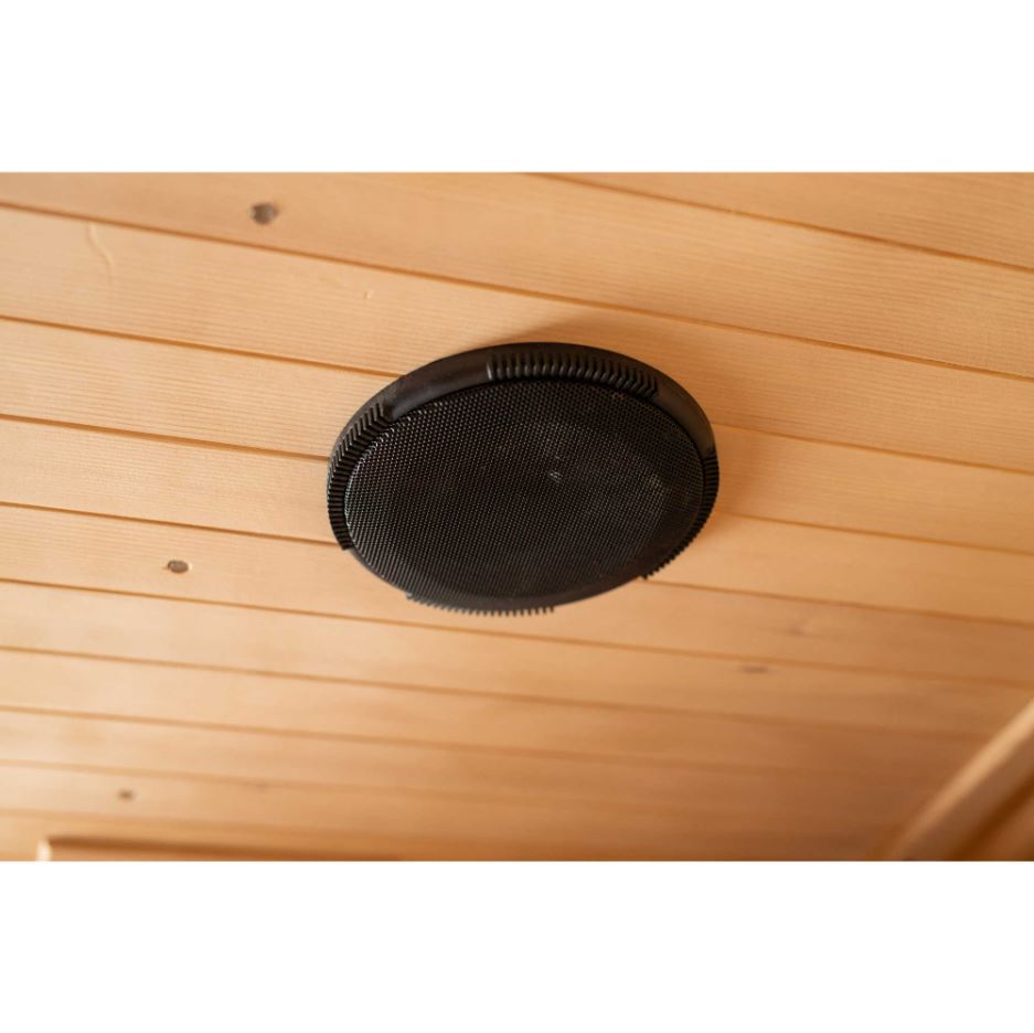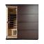Unlike any other sauna on the market today, the Sirona Premium Sauna features a sleek and contemporary design with unprecedented, innovative technology. The engineered-wood exterior panels laminated to "A" Grade, reforested Western Canadian hemlock provide maximum inner cabin heat-retention; while the stylish cabin design features an easy-clasp assembly system, safety glass, heavy-duty door hinges, commercial-grade heating panels, state-of-the-art touch screen control pad, high-performance speakers, interior lighting, chromotherapy and ceiling accent lighting. The handsome, rich mahogany melamine exterior panels accented in black add the final touches to this ultra-modern design that is certain to be an elegant addition to any interior space.