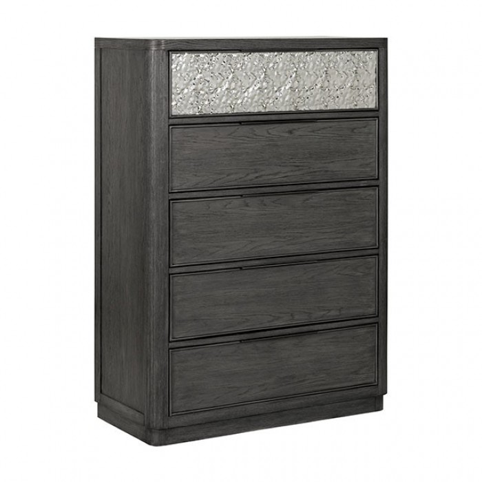 Sterling West Modern Contemporary Bed with Dented Metal Accent Panels