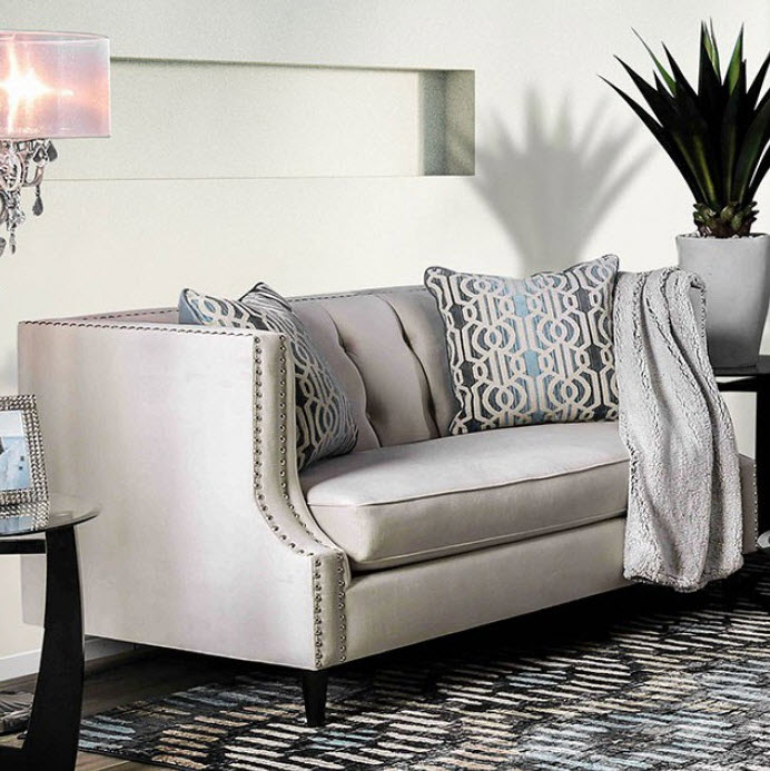 | Like a beautiful shoreline, this scenic sofa set is soothing and brings just the right amount of calming atmosphere to your home. The beige and blue color palette is just beautiful and flexible enough to allow you to decorate your home however you like. Envision this set in your living room, or a even in your foyer, this high track arms and delicate feet give it a compact look that is sophisticated and altogether comfortable. Bring a part of the beach into your home.