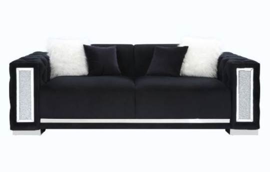 | Center your living room around utmost sophistication and exquisite style with this Trislar collection. The collection offers your interior space eye-catching appeal with its button-tufting details and mirrored trim accent. In a buttery soft black velvet upholstery to add richness and perfect modern glam addition for any room. With sleek chrome legs, this piece not only adds refined elegance, but also provides ultimate tranquility. *Please note that the base price only includes (1) Sofa. Please add the additional items to customize this set to your liking.