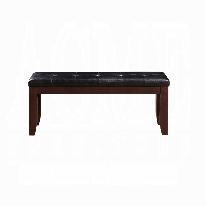 | The Urbana dining bench helps replace chairs, giving your Decor a less cluttered look. Its Dide frame is built using tough Wood solids and features stretcher bars to help support the tapered block legs. The bench's top is padded with a thick layer of soft, dense foam and upholstered in a beautiful black synthetic polyurethane leather.