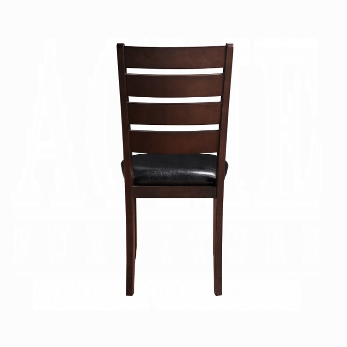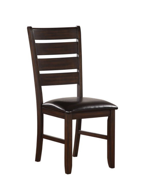 | The Urbana Side Chair will complete a contemporary dining set or add a modern touch to a more traditional table. The durable wood construction features a slat-back design and a your choice of rich finish. The finish options complement the black seat upholstery that has the look of luxurious leather fabric. These armless chairs are perfect as part of a larger set for your dining or kitchen space.