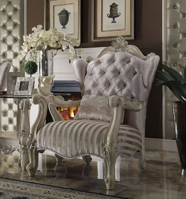 Creating an elegant and traditional design in living room, the Versailles collection is your ideal choice. Seating in a crescent environment and feeling like royalty, you can be more convenient to enjoy the family time or play with your friends. Additionally, combining with the two accent chairs and the circular design, this collection sofa set will have more room for family or friends and will create you warmer, comfortable, and friendly atmosphere both with cherry or bone white finishes! *Please note that the base price only includes (1) Sofa, please add the additional items to customize this set to your liking.