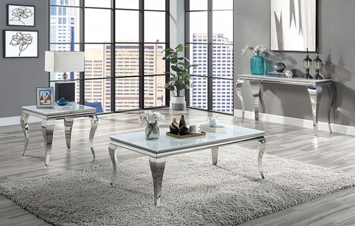 | Now, if there is a piece worth its weight, this is it! Each table in this glamorous set is crafted from stainless steel. Hefty in weight and looks, it features beautiful curved, cabriole-style legs that as expressive as they are timeless. The tops are made of beveled tempered glass showing either black or white shade to match your neutral, modern space. *Please note that the base price only includes (1) coffee table. Please add the additional items to customize this set to your liking.